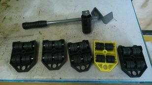 Kit comprenant : 4 planches à roulettes 8 sangles 1 lève-meuble 4 cales à roulettes